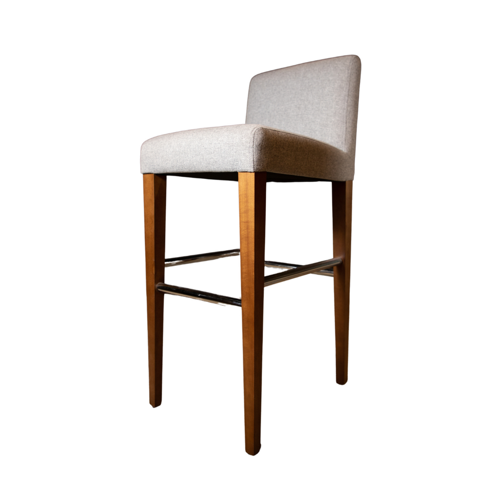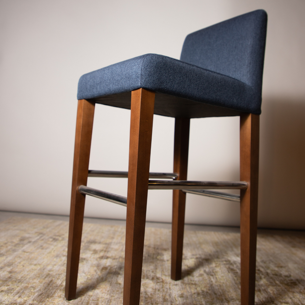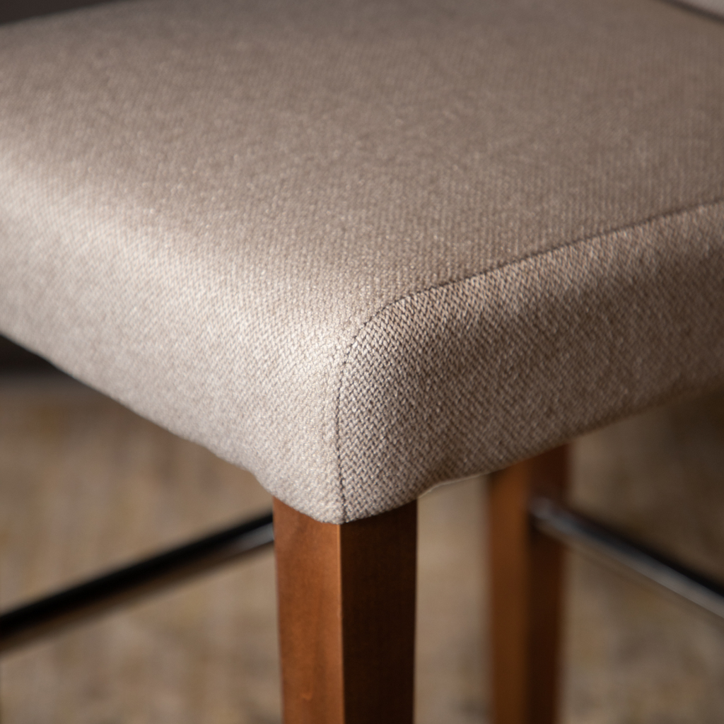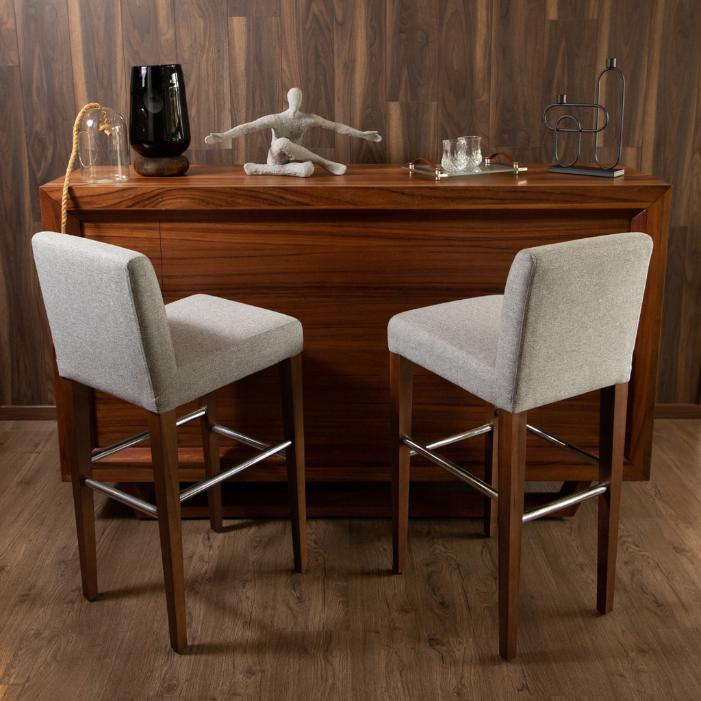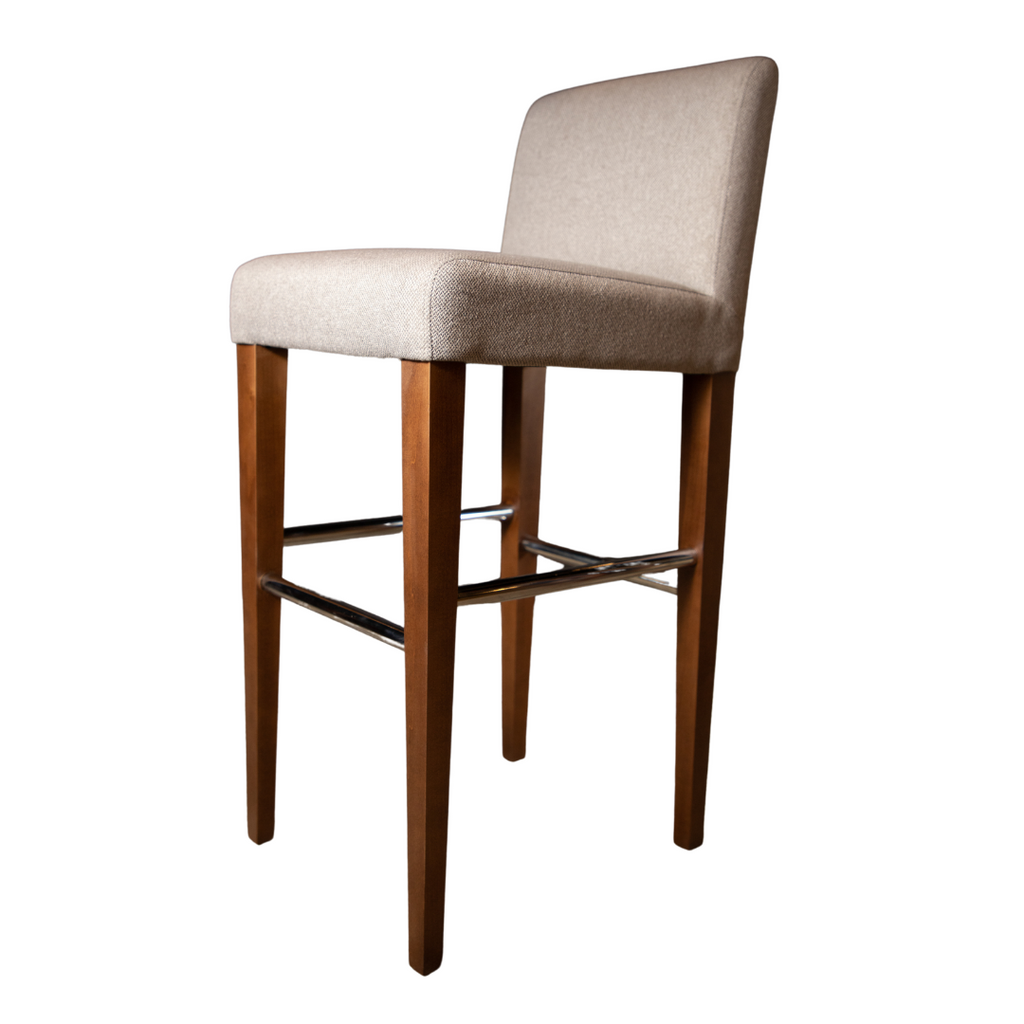 Banco para cocina o bar para con patas en madera de poplar sólido color nogal y telas de alta calidad