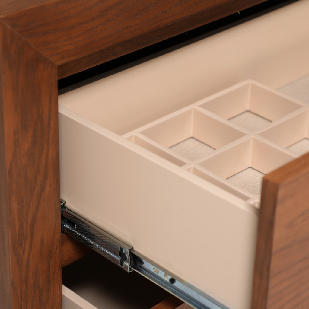 El balance perfecto entre lo sencillo y lo exótico. Esta recámara posee un diseño sencillo pero lo que la hace especial es la chapa natural de encino en color maple que la hace resaltar del resto de nuestras colecciones. Es un elemento adaptable a cualquier habitación y con la facilidad de combinarse con varios productos de nuestra sección de accesorios.